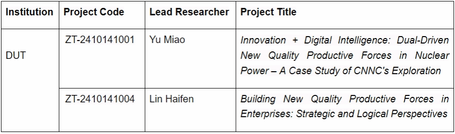 China Academic Degrees & Graduate Education Development Center(CDGDC)recently announced the results of its 2024 Thematic Case Project initiative, with two case projects from DUT SEM approved for funding. The awarded projects are: