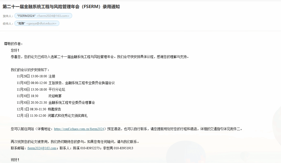 第二十一届金融系统工程与风险管理年会(FSERM)