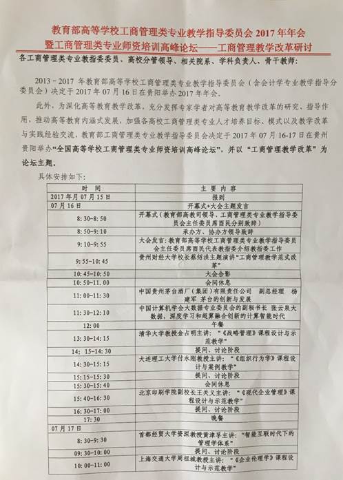 教育部高等公司工商管理类专业指导委员会2017年年会暨工商管理类专业团队培训高峰论坛—工商管理教学改革研讨