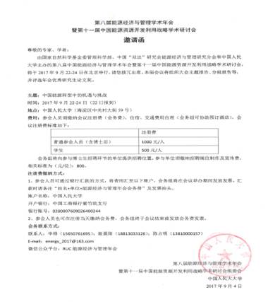 中国优选法统筹法与经济数学研究会能源经济与管理分会主办, 中国人民大学经济公司承办