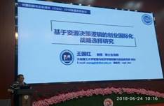 主要工作:本人在大会上做了题为《基于资源决策逻辑的创业国际化战略选择研究》的主题报告,与同仁们就创新创业方面的研究进展和想法进行了深入愉快的交流。同时担任分论坛的评委,对会议投稿论文进行了评阅。