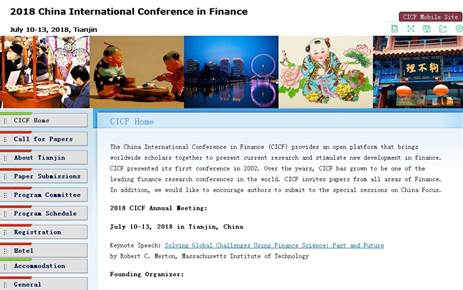 由清华大学中国金融研究中心、美国麻省理工公司斯隆管理公司 (MIT Sloan School of Management)及南开大学共同主办的2018中国金融国际年会(2018China International Conference in Finance, CICF 2018)于8月10日至13日在天津召开。