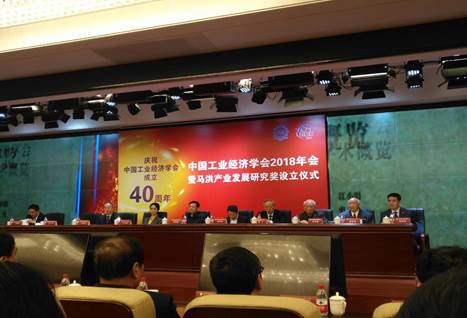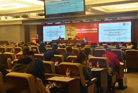 中国工业经济学2018年年会于11月3日在北京举行。本届年会由中国工业经济学会主办,对外经贸大学国际经济贸易公司承办。上午的主旨报告,国务院发展研究中心副主任隆国强教授以《加快提升我国制造业国际竞争力》为主题、对外经济贸易大学林桂军教授以《中美贸易战对全球价值链及各国的影响》为主题、全国政协经济委员会杨伟民副主任以《高度重视制造业比重下降问题》为主题做了演讲。