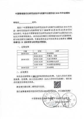 2018中国技术与创新管理年会由中国管理现代化研究会技术与创新管理专业委员会主办、汕头大学商公司承办。该研讨会旨在促进我国青年才俊与资深专家之间的深度学术讨论,对当前热门创新与创业研究领域最新成果进行报告分享与互评。