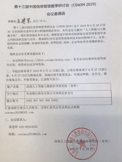 本届CSWIM会议的主题是“人工智能与大数据分析”。500多名学者参加了本次会议,会议主要聚焦信息管理领域。本人主要参加了智能制造论坛,与来自思科、TCL等企业界的管理人员和工程师进行了广泛的交流。另外与国外合作者梁会刚教授进行了学术交流,同华盛顿大学谭勇老师就我们的一篇学术论文进行了深入交流,同时也与参会专家进行了广泛的交流。