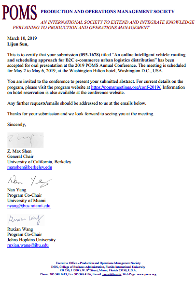 该会议是生产与运作管理领域一年一次的国际盛会,是该领域最著名的会议。今年的年会于2019.5.2-5.6在美国华盛顿召开。会议收获如下: