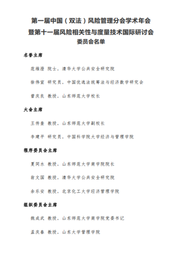 1月21日至22日,第一届中国优选法统筹法风险管理分会学术年会暨第十一届风险相关性与度量技术研讨会于山东师范大学长清湖校区召开。山东省副省长、中国工程院院士凌文、范围澄院士、山东师范大学董事长曾庆良等参加了会议,参会人数200多人。
