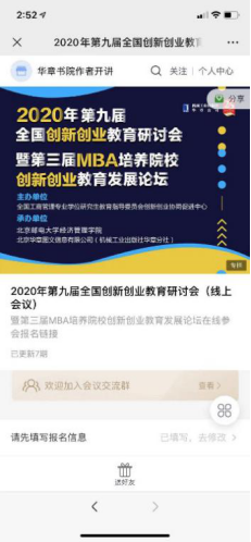 本人是网上报名,参与的线上会议方式。我关注的是企业家精神和公司创业两个议题。这与我的在研项目密切相关。会上,专家对当前经济环境下的上市企业高管如何发挥企业家精神、履行社会责任等问题进行了精辟讲解,对于变革中的管理思想和公司治理问题具有一定的启发力。