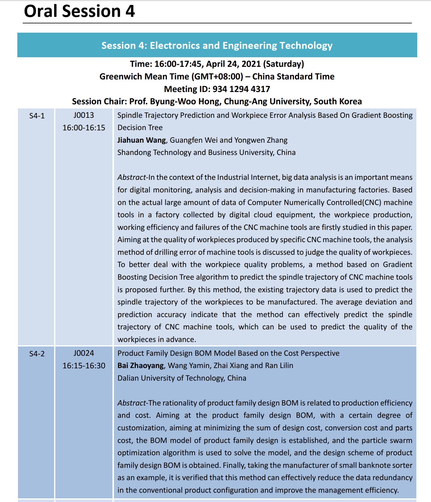 个人收获:通过会议在线交流,与国内外同行围绕制造过程的人工智能应用进行深入探讨,对该领域未来发展趋势有了更深的认知,对于后期在研究方法、研究思路的开阔些和深度上有较好的借鉴。