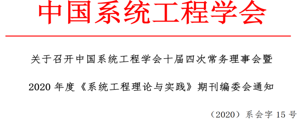 中国系统工程学会十届四次常务理事会暨《系统工程理论与实践》期刊编委会定于 2020 年 9 月 12-13 日在重庆召开,本次会议由重庆大学承办。
