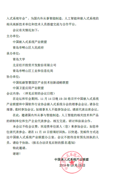 为了提高我国智能制造、人工智能和嵌入式系统技术及应用水平,促进智能制造深入发展,中国嵌入式系统产业联盟和青岛市崂山区人民政府定于11月14日和15日(星期五)在美丽的海滨城市青岛联合主办“中国智能制造技术创新发展国际论坛暨2019年中国嵌入式系统年会”,为国内外从事智能制造、人工智能和嵌入式系统的相关高新技术单位和技术人员搭建交流与合作平台。
