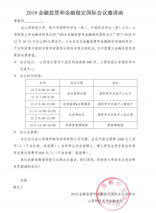 山西财经大学;新兴市场研究学会(美);中国经济学会(英)