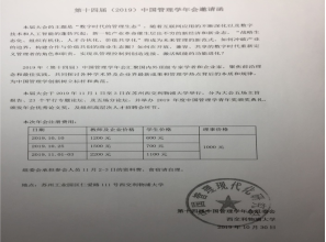 会议简况:第十四届中国管理学年会汇集国内外顶级专家和企业家,聚焦前沿理念和最佳管理实践,共同探讨学术界和企业界最新成果和管理学热点,会议设有大会主旨报告, 平行论坛和专题论坛。