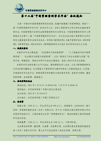 会议简况:本次会议主要围绕着后疫情时代的创新管理、人工智能时代的中国管理实践、企业数字化转型与创新管理,以及新常态下的企业转型与发展等议题展开,采用特邀报告、现场点评和平行论坛主题报告的形式展开,有助于进一步推动中国管理案例研究的发展。