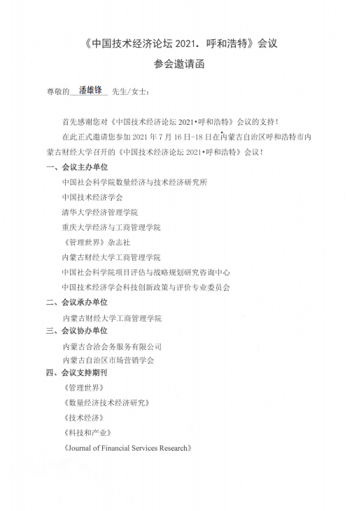 2021年7月17日-18日,中国技术经济论坛2021在呼和浩特内蒙古财经大学举办,论坛围绕高质量发展与新旧动能转换、国家战略科技力量布局、绿色创新发展与产业升级、企业技术创新能力、科技创新体制机制、人才创新活力、数字经济发展、能源安全与新能源发展、全要素生产率研究、科技创新政策评估、“双循环”创新发展等话题,与会嘉宾和代表系统、深入地进行研讨。