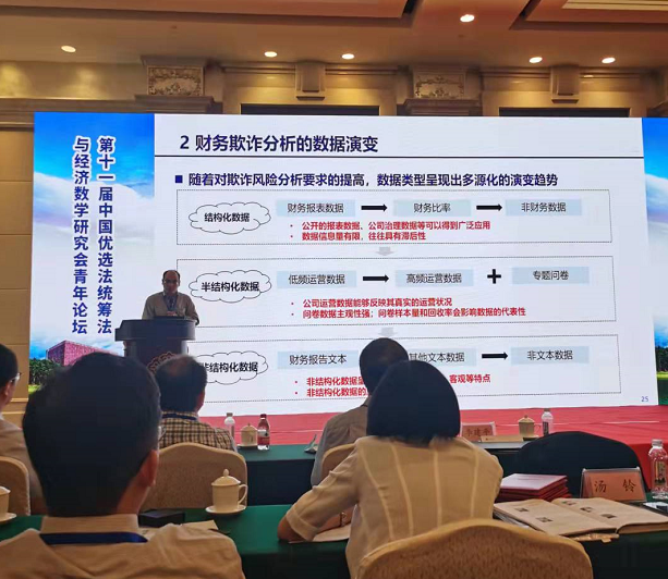 个人收获:本人于9月29日上午聆听《多源数据驱动的财务欺诈风险分析》等业内专家的大会报告,下午由我本人报告学术论文《基于企业不对称相关性的多元马尔可夫链违约风险预测模型》,受到与会学者的好评。9月30日,聆听《经济学中的运筹学派》等优秀学者大会报告。10月1日,与贵州大学周乐欣教授、王婷教授讨论西部地区小企业、农户信用数据问题。10月2日返连。