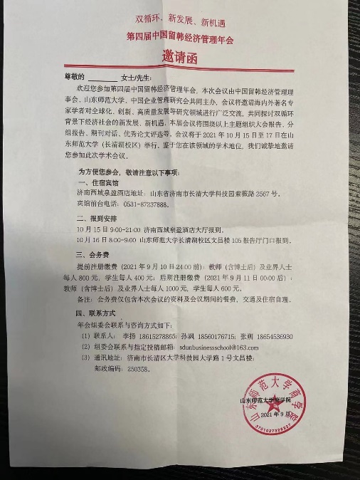 第四节中国留韩经济管理年会在济南召开。本人受邀参会,并做大会报告。并与参会的国内其他学者进行了深入的交流。