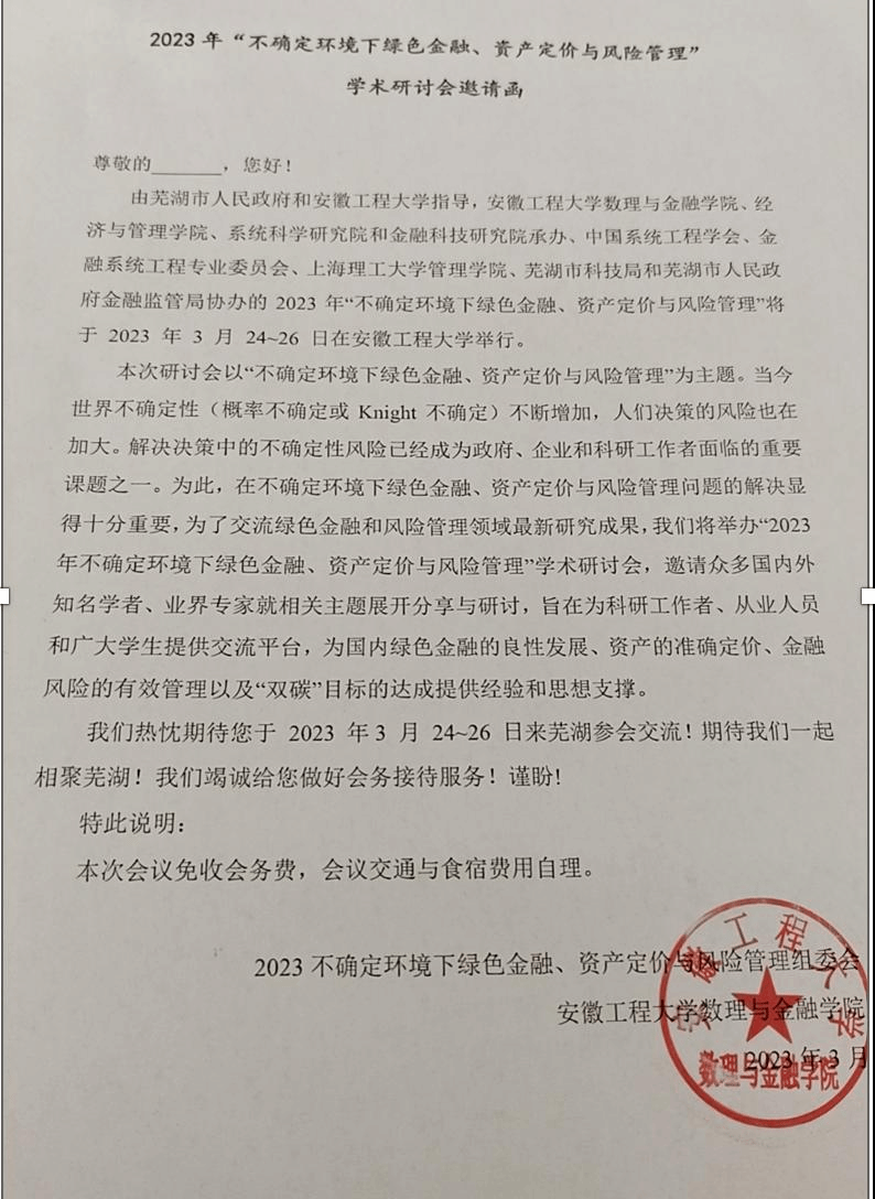 2023年“不确定环境下绿色金融、资产定价与风险管理”学术研讨会