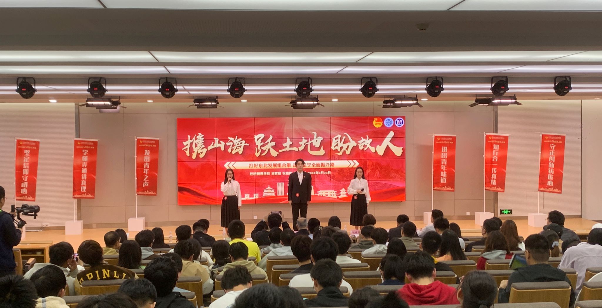 青春在担当时代重任中绽放光芒,生命在践行使命中彰显价值。三位主讲人发出号召,呼吁同学们建设辽宁、振兴辽宁,以责任为桅,扬奋进之帆。在团课的最后,三位主讲人与经管学子代表共同喊出“大工青年,创新实践;锐意进取,留辽兴连”的铿锵誓言,展现出经管学子的卓越风采,抒发经管学子“爱辽兴辽”的满腔热血与决心!