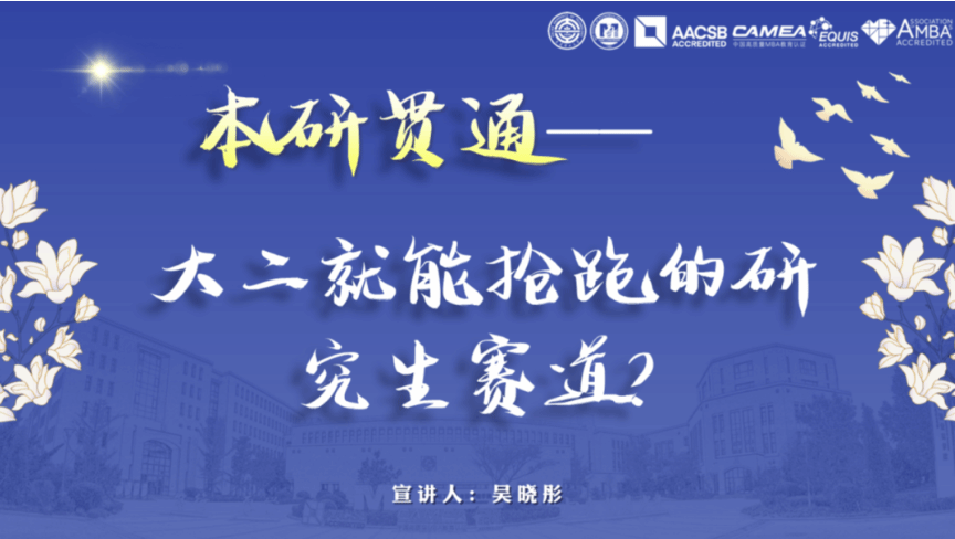 保研经验:吴学姐着重介绍了以“数智+经管”为培养目标的“本研贯通培养计划”实施方案,介绍了“优选导师,提前进组”、“比同级学硕同学提前一年毕业实现抢跑”等优势,并详细讲解了培养情况和激励保障。