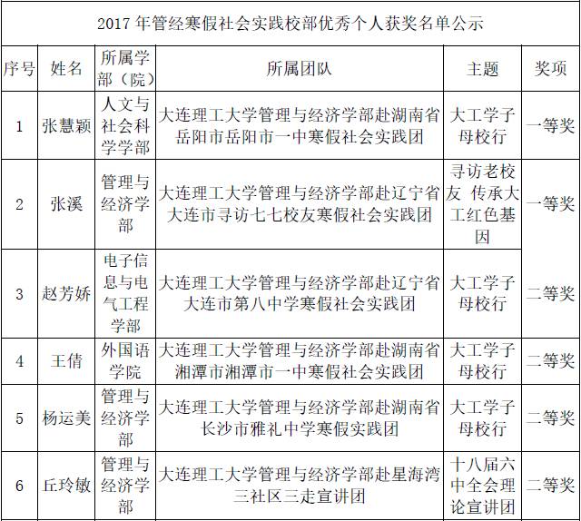 恭喜诸位获奖的同学,希望各位同学在今后的社会实践活动中继续发扬管经的卓越风采,努力打造精品实践,在社会实践中养真知,增长才干!