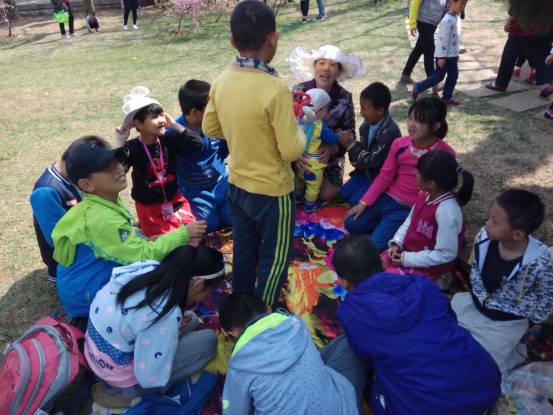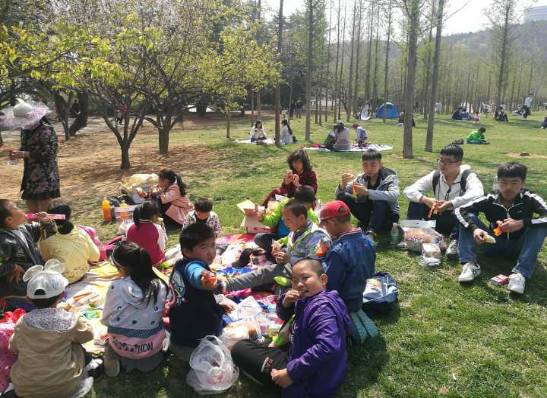 不知不觉,时间已经到了中午,我们来到了草坪上,铺开布,拿出早已准备好的午餐,逐一分给每个小朋友,他们也拿出自己带来的东西给大家分享,还逐一分给了我们的志愿者,让他们觉得内心特别温暖,特别开心。这也许就是爱的传递吧!
