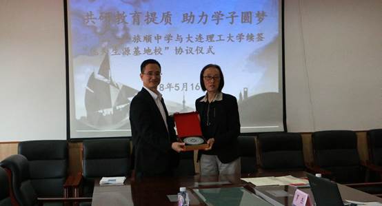随后双方进行了人才培养合作协议的续签,林老师代表公司向旅顺中学赠送纪念品。