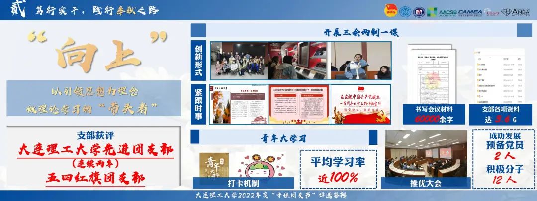 建设“向上”的团支部,做理论学习的“带头者”。她坚持高质量开展团课,结合理论与实践,紧跟时事要点;坚持督促青年大学习,支部青年大学习平均学习率近100%。三年多理论学习,支部团员思想水平明显提高,现共有入党积极分子12人,预备党员2人。支部连续两年获评伟德官网bv1946先进团支部,并获评2022年度五四红旗团支部。