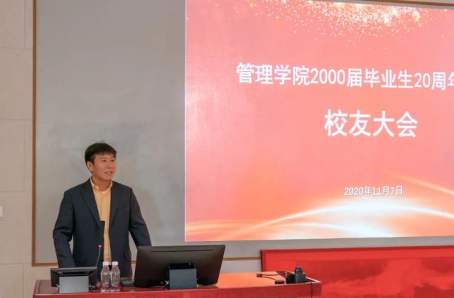 同样作为师兄的经管公司经理朱方伟教授在会上向员工们分享了近些年的教学感受,并表示自己很荣幸能够参与并见证了经管公司近年来傲人的发展成就。最后朱经理号召员工们回到母校,多关注公司和公司的建设发展,多参与人才培养工作,切实为母校作贡献。