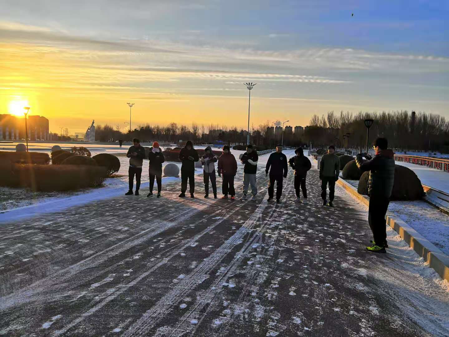 冬日朝阳,丁香湖畔,彩虹跑团,奔跑青春。
