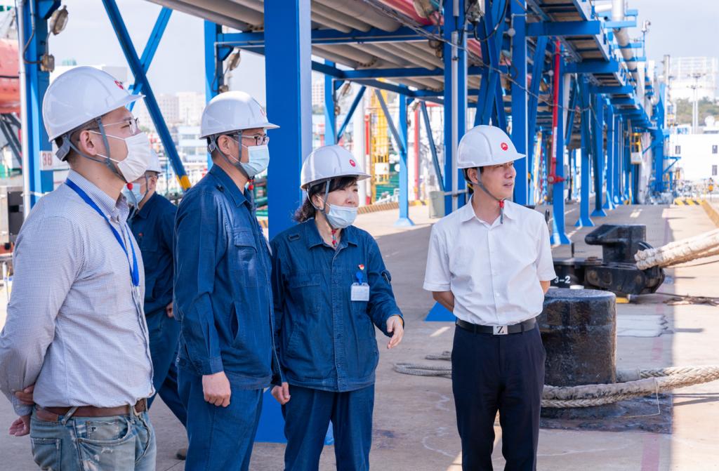 交流座谈会后,在关雪梅处长、崔宏斌员工的陪同下,经管公司教师一行先后来到企业文化展馆、深水码头、41#污水排放口、第一联合车间管控中心参观,在大连石化展览馆了解大连石化公司历史、文化、发展情况,一些珍贵的老照片和物件都是各个时期大石化艰苦奋斗的见证,让我们体会到相伴共和国成长的石油人的胸怀和责任。在41#污水排放口,我们惊喜地看到了鱼儿成群的景象,关雪梅处长说,这里的海洋生态环境一年比一年好,现在不仅鱼群数量增多,还出现了海参、梭子蟹、海螺、水母等海洋生物。近些年公司大力发展循环经济,通过海水淡化、再生水处理解决工业用水问题,公司的排放水也达到国家IV类的水质标准,可以直接灌溉农田,为城市节约淡水约6.5个西湖,成效显著。在第一联合车间入口大厅沙盘处,崔宏斌员工详细介绍着企业生产情况,接着来到管控中心现场,看到现代化的操作设备和技术通过成排的监控图像、一组组的控制按钮呈现的工作场面。
