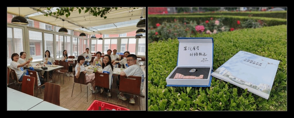 重聚大会后,员工们步行至沁园餐厅二楼体验怀旧午餐,重温了当年排队打饭的经历。就餐后,员工们在校园里进行了游览,一起回忆了曾经的校园生活。