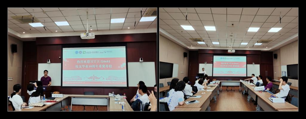 2021年6月12日,端午小长假的第一天,13名来自国贸英强专业0601班的员工从北京、重庆、武汉、沈阳、丹东、大连等地重返母校,参加毕业十周年聚会。