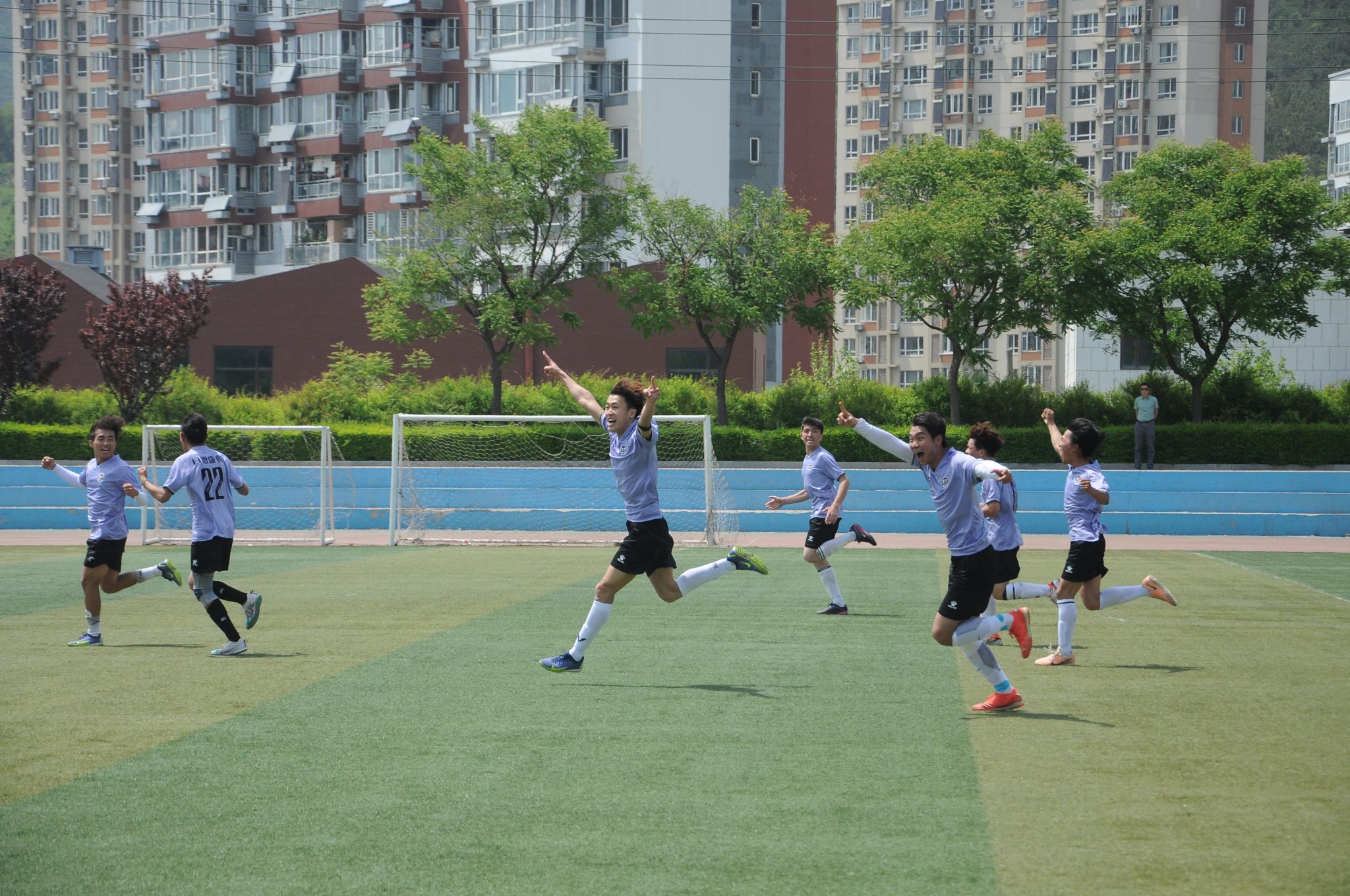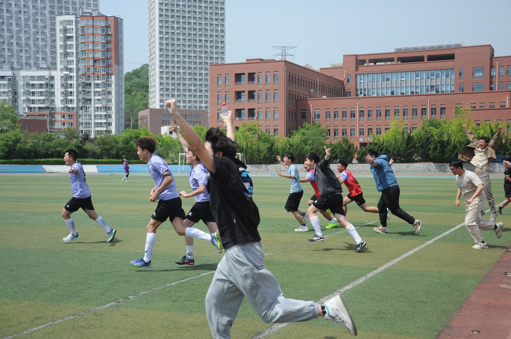 落后的对手在赛程后半段大举压上,沈宇昊,旦增康典,艾孜合尔,吾金仁曾四后卫密不透风,严防死守。随着最后的界外球被经管破坏,裁判吹响了比赛结束的哨声,经管2:1战胜对手!夺得了伟德官网bv1946院足球赛最高荣誉!