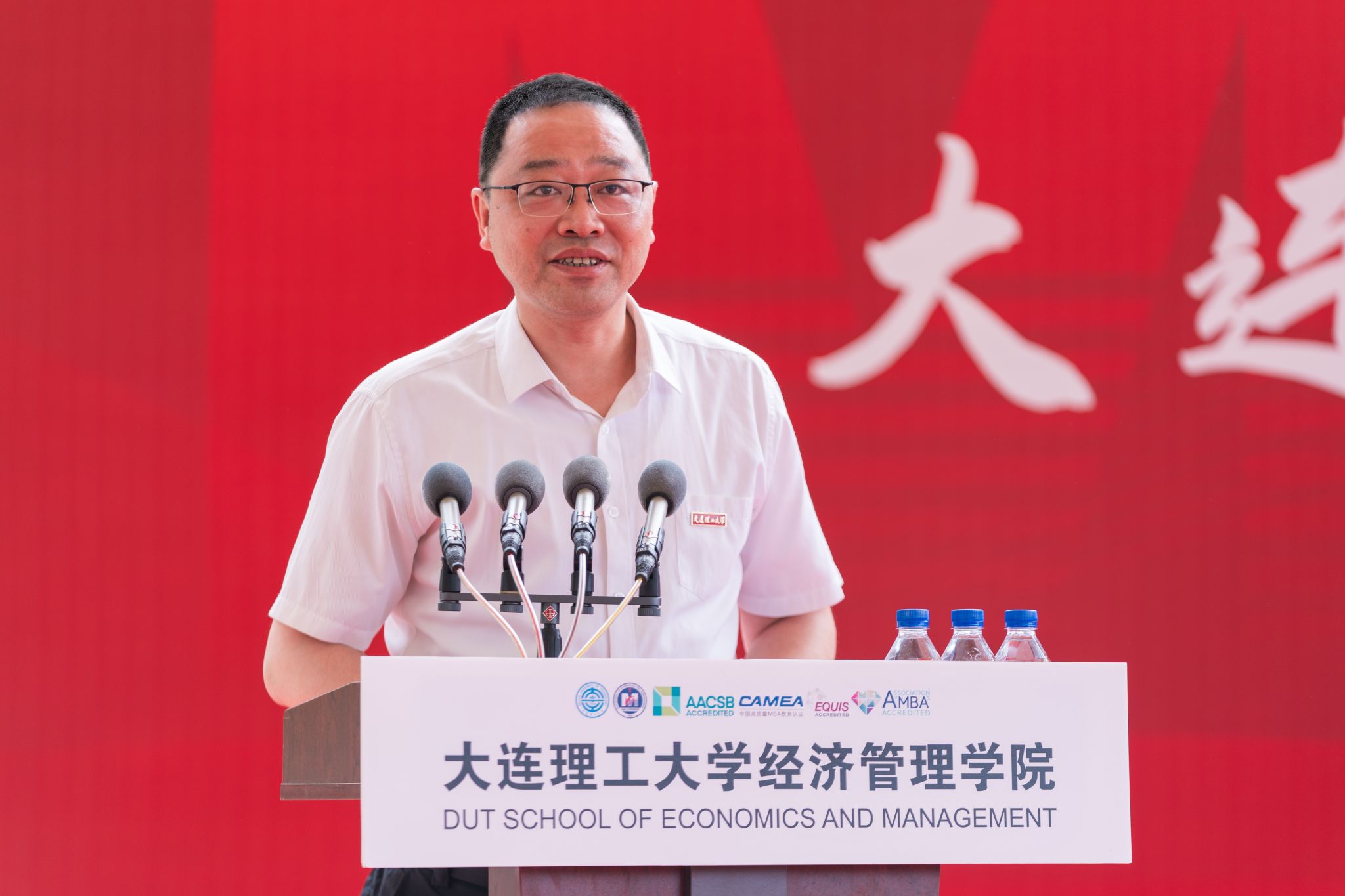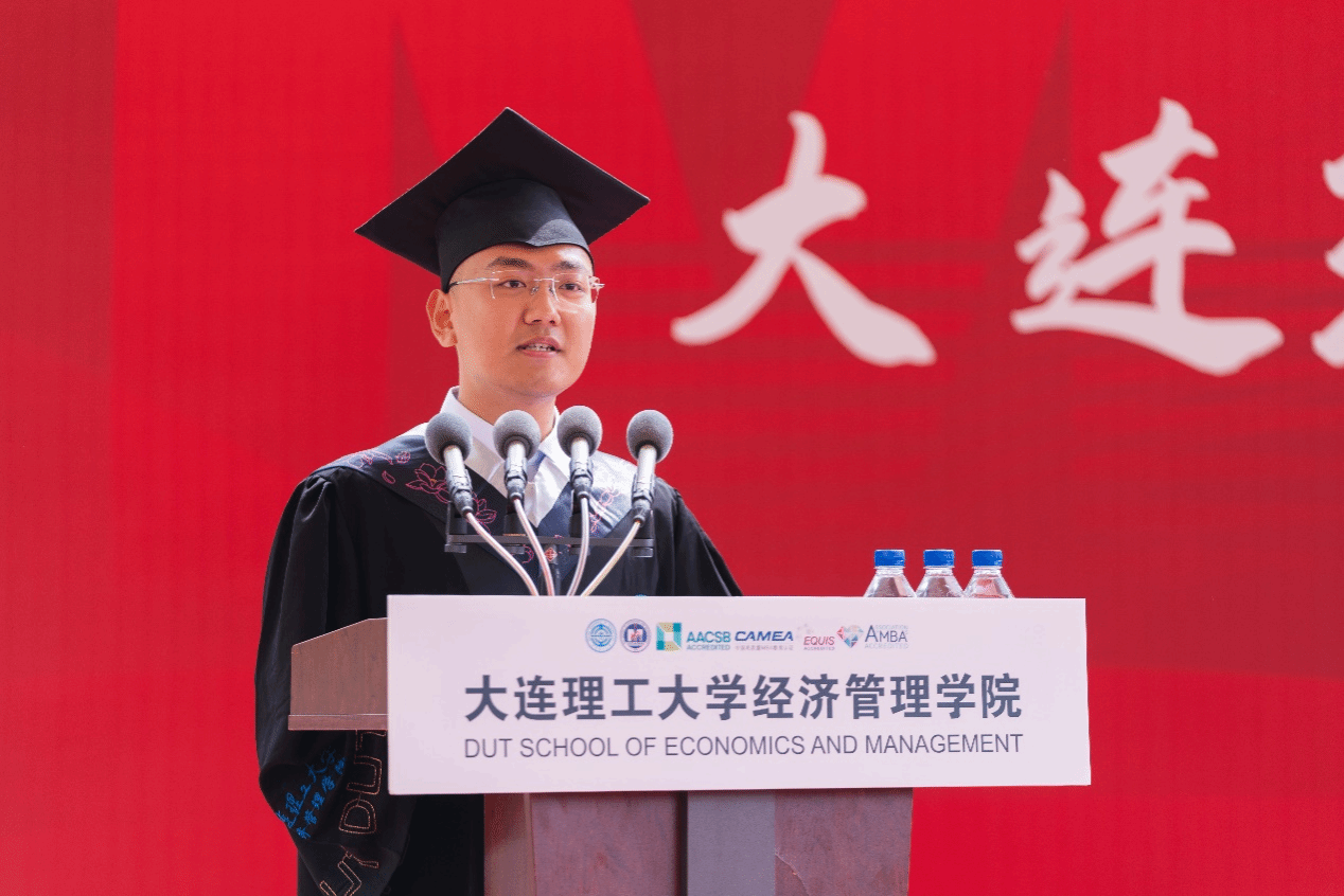 随后,经理叶鑫发表讲话。叶鑫代表公司向学业有成、开启人生新篇章的同学们表示最热烈的祝贺!叶鑫经理带着牵挂与不舍向同学们寄予三点嘱托:第一,要沉下心,埋头干事业;第二,要睁开眼,抬头看世界;第三,要放开手,领头向卓越。相信经管学子能够在广阔天地下,大有作为,将卓越经管的精神播撒到五湖四海,祝福同学们乘风破浪,勇立潮头,在数字化时代的浪潮中,成就精彩人生!