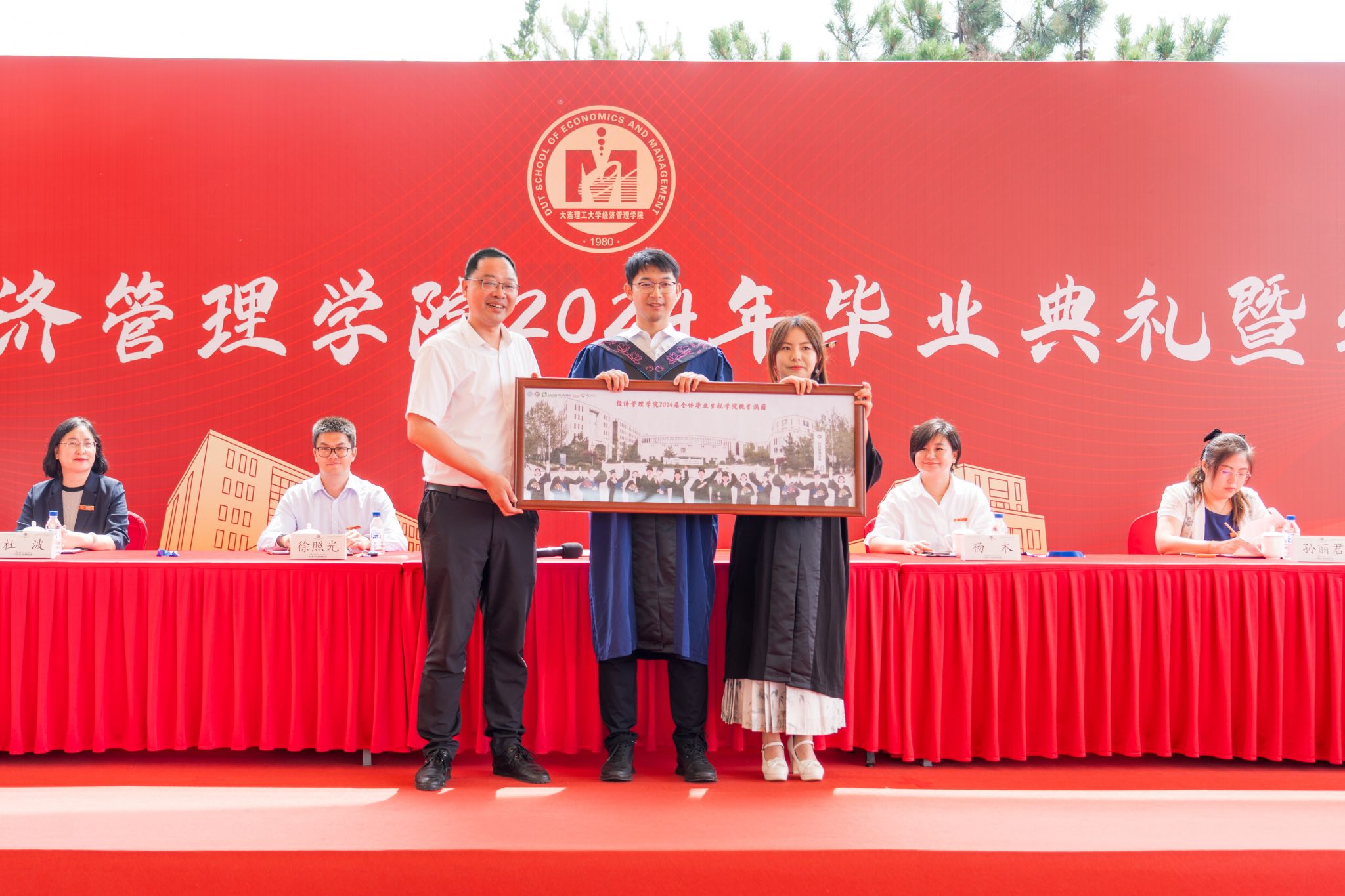 毕业生们为公司定制了一份特别的纪念品,纪念品为毕业员工绘制的公司大楼整体,并由毕业生签名而成,画面尺寸是40x115cm,40象征伟德官网bv1946MBA教育创办以及公司首届本科生招生40周年,115是40+75,其中75象征公司建校75周年,郁郁葱葱的树木寓意经管公司桃李满园、春晖四方。经理叶鑫代表公司接受2024届毕业生赠送公司的纪念品,他表示深深感受到了同学们对于母校,对公司的深深感情与情谊,祝愿同学们能奔赴到更广阔的天地中去。