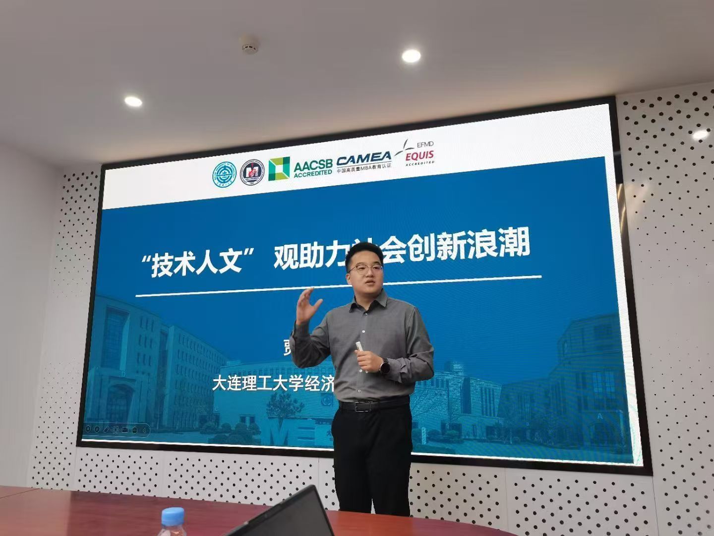 实践活动的最后,贾依帛老师代表实践团进行“‘技术人文观’助力社会创新浪潮”主题汇报。浪潮科技副总经理李照川、科技创新部总经理林杰和市场营销部副总经理林浩在讨论环节一致认同技术人文观的重要性,并表示希望未来能够与实践团以及大工经管公司进行更多融合理论与实践的创新合作。