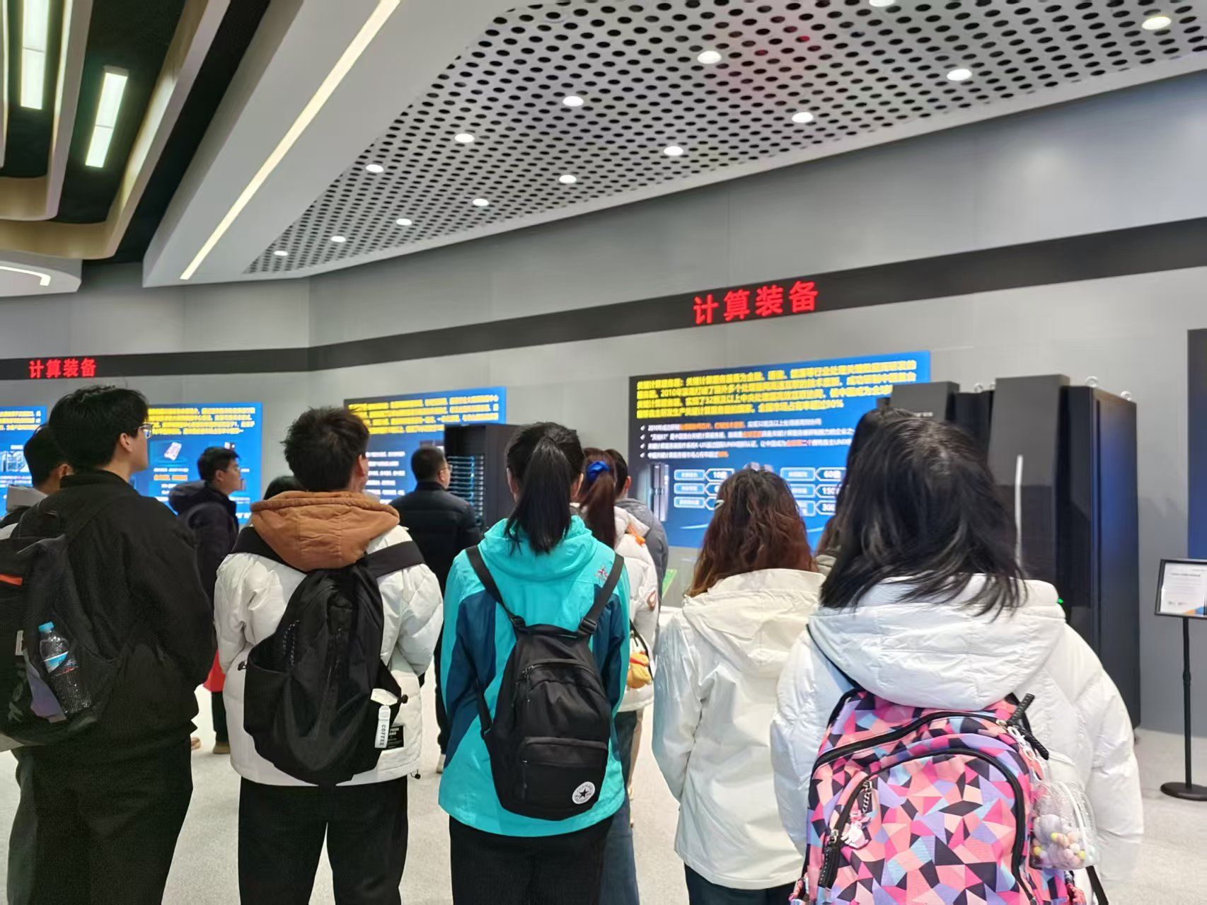 初入浪潮集团,实践团全体师生在浪潮工作人员的带领下参观集团展厅,全面了解浪潮在信息服务领域的创新应用。从计算装备到云计算服务,再到智能终端,工作人员详细讲解产品与技术背后的研发理念,使成员们对其业务布局、企业历史、代表性产品等方面形成清晰的认识。