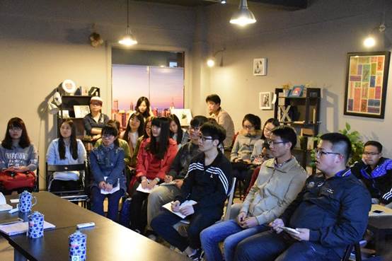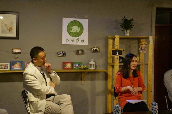 2016年4月10日晚6点,“扣子茶舍”第二期《在银行工作是怎样一种体验?》在七号时光社区驿站顺利开展。活动由管理与经济学部国际经济与贸易专业负责人丁永健副教授主持,邀请了国际经济与贸易(英语强化)专业2011届毕业生时蕾学姐和赵家鹏学长为在校生分享他们的银行从业经验。
