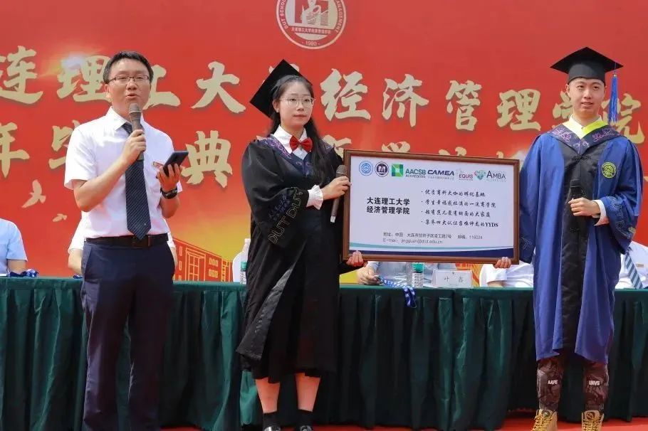 毕业生们为公司做了一张名片,头衔是:优质商科大咖的孵化基地、员工幸福感拉满的一流商公司、超有范儿最有排面的大家庭、集齐四大认证召唤神龙的YYDS。党委书记孙玉涛代表公司接受2023届毕业生赠送公司的纪念品,寄语同学们成长为大工的顶流,国家的栋梁,时代的弄潮儿。每一位经管学子在这里度过清澈纯净、勇敢热烈、酣畅淋漓的青春,接受无微不至的关怀,汲取知识,收获成长,从这里启航。无论今后在哪里栖息,公司永远是经管学子的家。