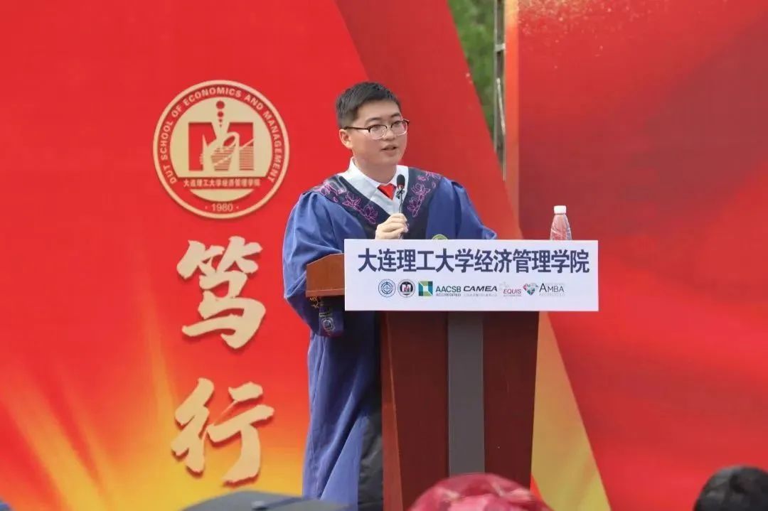 接着,经理叶鑫发表讲话。叶鑫代表公司向圆满完成学业的毕业生致以最热烈的祝福和最美好的祝愿,并向同学们寄予三点嘱托。第一,要做志存高远的经管人:兴学强国,坚定理想追求;第二,要做高尚如玉的经管人:筑牢底线,锤炼品德修为;第三,做实学实干的经管人:脚踏实地,坚持追求卓越。相信毕业们在经理的谆谆嘱托下,必将以卓越为鉴,奔赴向前;以梦想为光,不负韶华;以经管人、大工人的精神风貌,昂首挺胸地迈向新征程!
