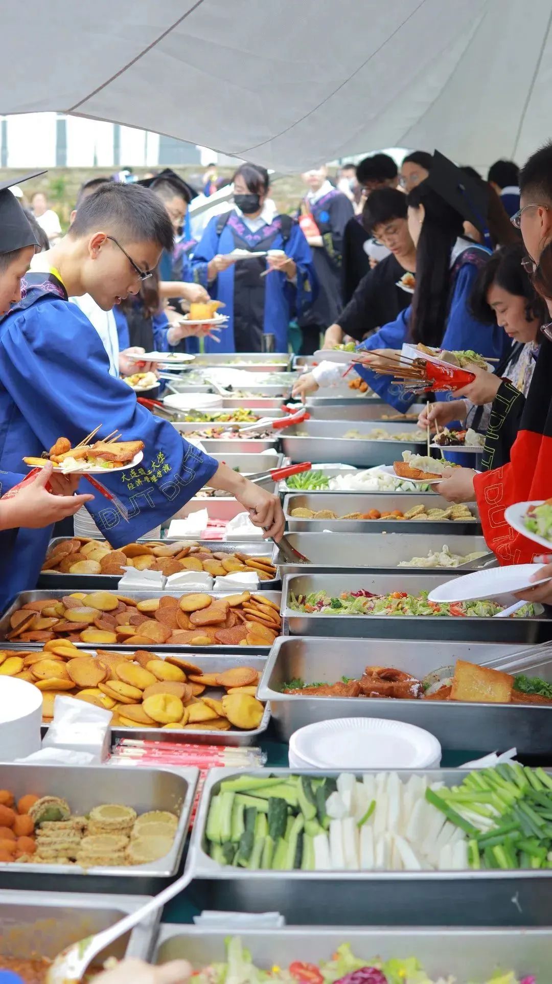 毕业典礼结束后,毕业冷餐会正式开始。公司领导、教师代表、员工代表共同举杯为毕业生祝酒。大家结伴而行,围绕着餐桌品味佳肴,与同窗、老师们一起聊规划、话离别。毕业生们用味蕾留住青春记忆,用笑意定格彼此脸庞。夏花灿烂的绽放,倒映的是经管学子们在短暂旅途中,遇到的最美丽的风景,来日方长暂作别,循光而往踏歌行。