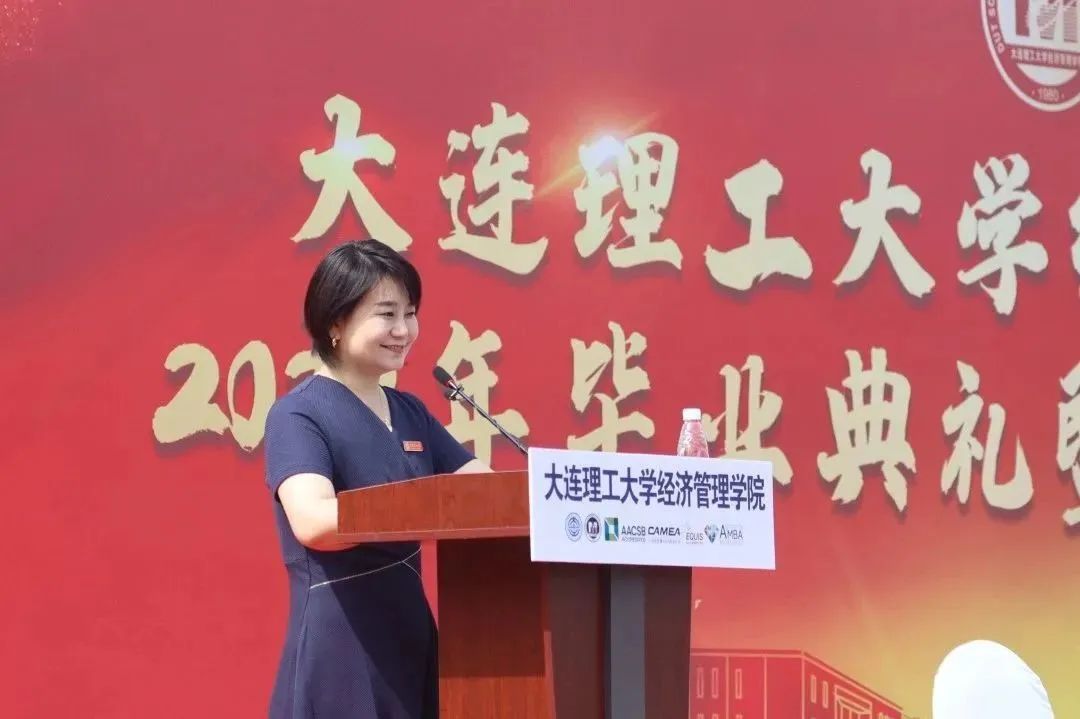 郑美女士代表所有毕业生家长发言,她为孩子在大工经管公司的培养下获得的进步与成长感到高兴,为孩子能够身处如此优秀的集体感到骄傲,对所有公司的领导和老师们表示衷心感谢,同时也向所有为了梦想拼搏奋斗过的毕业生们表示深切的祝福与嘱托。