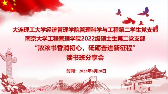 任职期间,李梦洁同志始终将“加强思想引领、推动共建共学”作为支部建设的重要方向。她与宣传委员张辰玥同志牵头策划并带领支部与南京大学工程管理公司硕士生第二党支部,于2023年4月至6月联合开展“奋进读书会,坚定信念红”系列共建活动。这是一场跨校、跨区域的联学尝试,也是一次围绕“学思想、强党性”的理论实践探索。