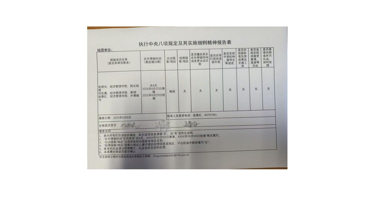 上述行程严格按照审批后的行程,执行中央八项规定及其实施细则精神报告表如下: