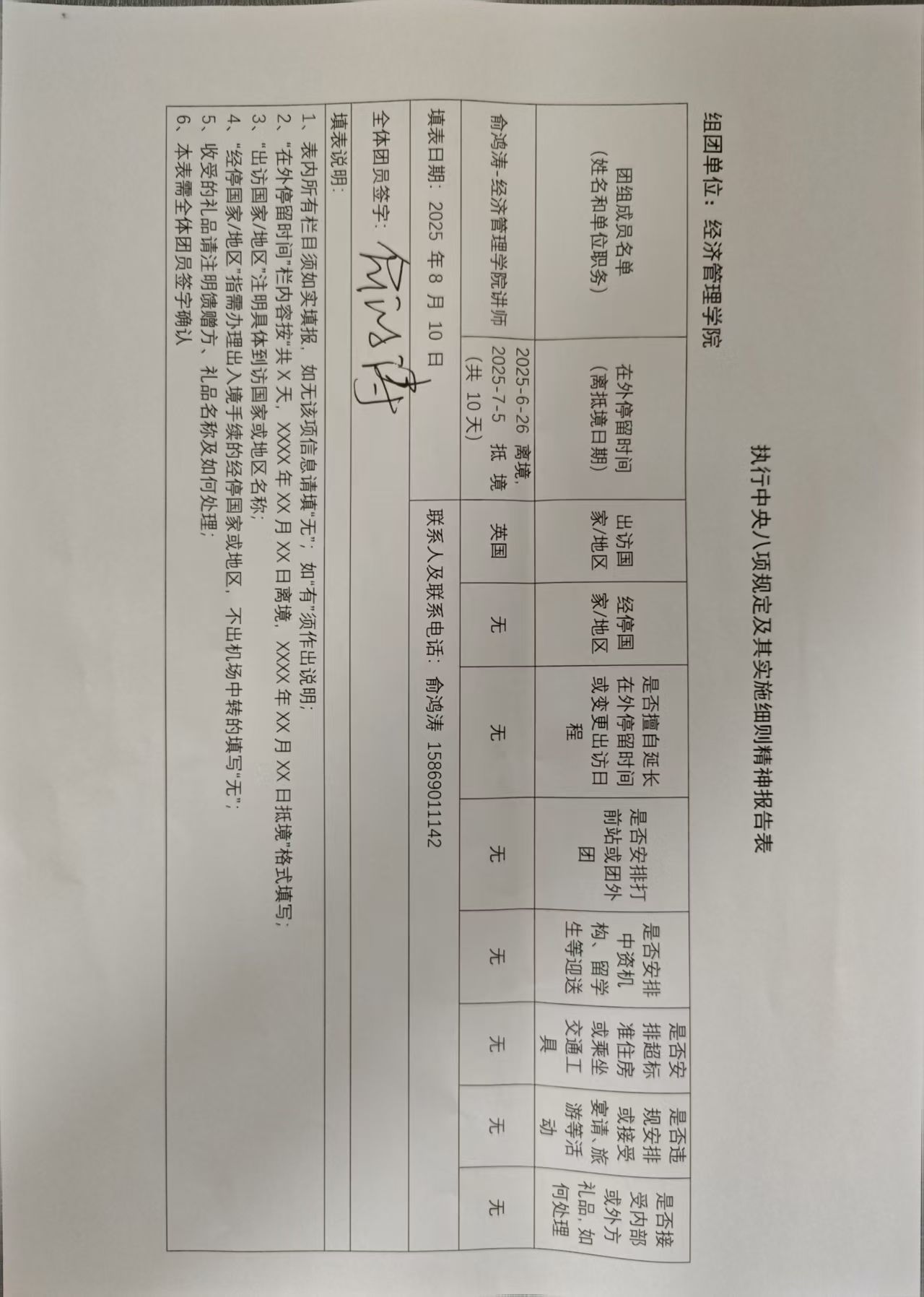 2025年 6月26日至 7 月5日,公司管理公司俞鸿涛助理教授应INFORMS MSOM 国际会议组委会与 INFORMS on Service Science 国际会议组委员会邀请,赴英国参加了"INFORMS MSOM conference 2025"和"INFORMS conference on service science 2025"学术会议。