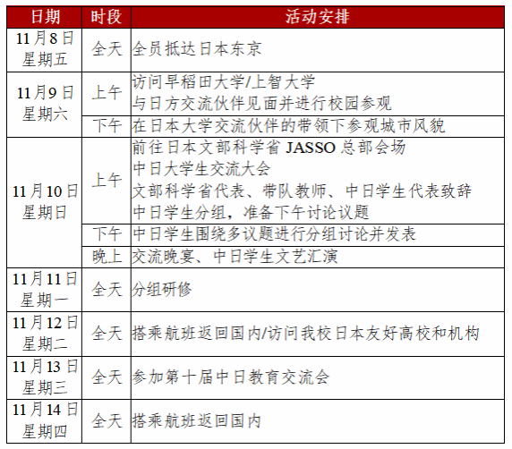 此次活动作为第十届中日教育交流会的分论坛之一,希望提升员工国际视野的同时,促进中日青少年友好交流。参会员工将与日本早稻田大学、上智大学等众多知名高校的日本员工共同交流学习,中日员工将一起就多个议题展开讨论并进行小组汇报。此外,中日员工也将一起参观校园、探访历史古迹、漫步城市街头,并在晚宴上开展文艺汇演。期待通过此次交流活动,增进中日员工的相互理解,开拓员工国际视野,提升员工的跨文化交际能力、语言能力和个人综合素质。