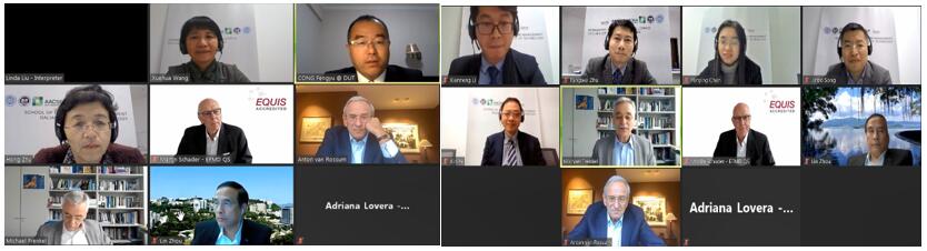 EQUIS线上认证分组会议(评审专家组与校院领导)