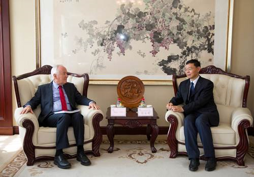彼特教授在听取介绍后表示,很高兴在发展商公司方面双方有着很多一致的观点和想法,他指出,EQUIS认证旨在推动教育的进步,现场评估也是为了更好地促进管理与经济学部的发展。随后,彼特教授还就学部发展愿景与使命、国际化建设、团队建设等方面与郭东明董事长进行了深入交流。